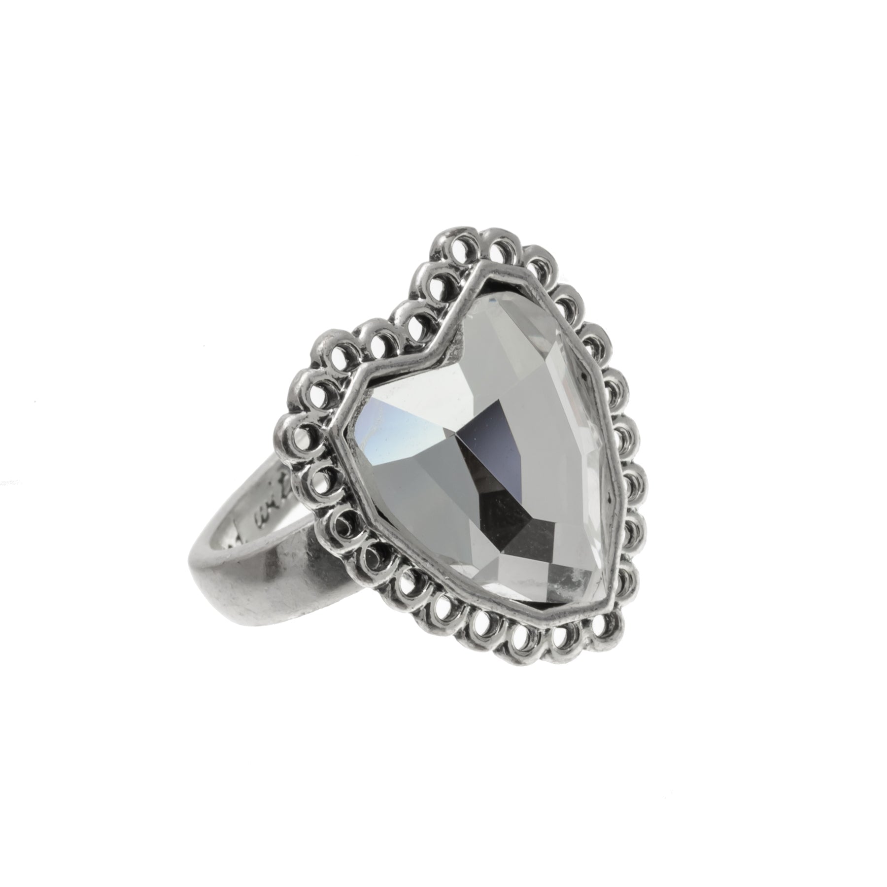 This playful ring features a stunning bezel-set crystal heart that catches the light from every angle, making it the perfect conversation starter for nights out or everyday glamour. Whether you're celebrating love or just loving yourself, this cocktail ring brings sparkle and personality to any look. Wear it bold, wear it proud.
