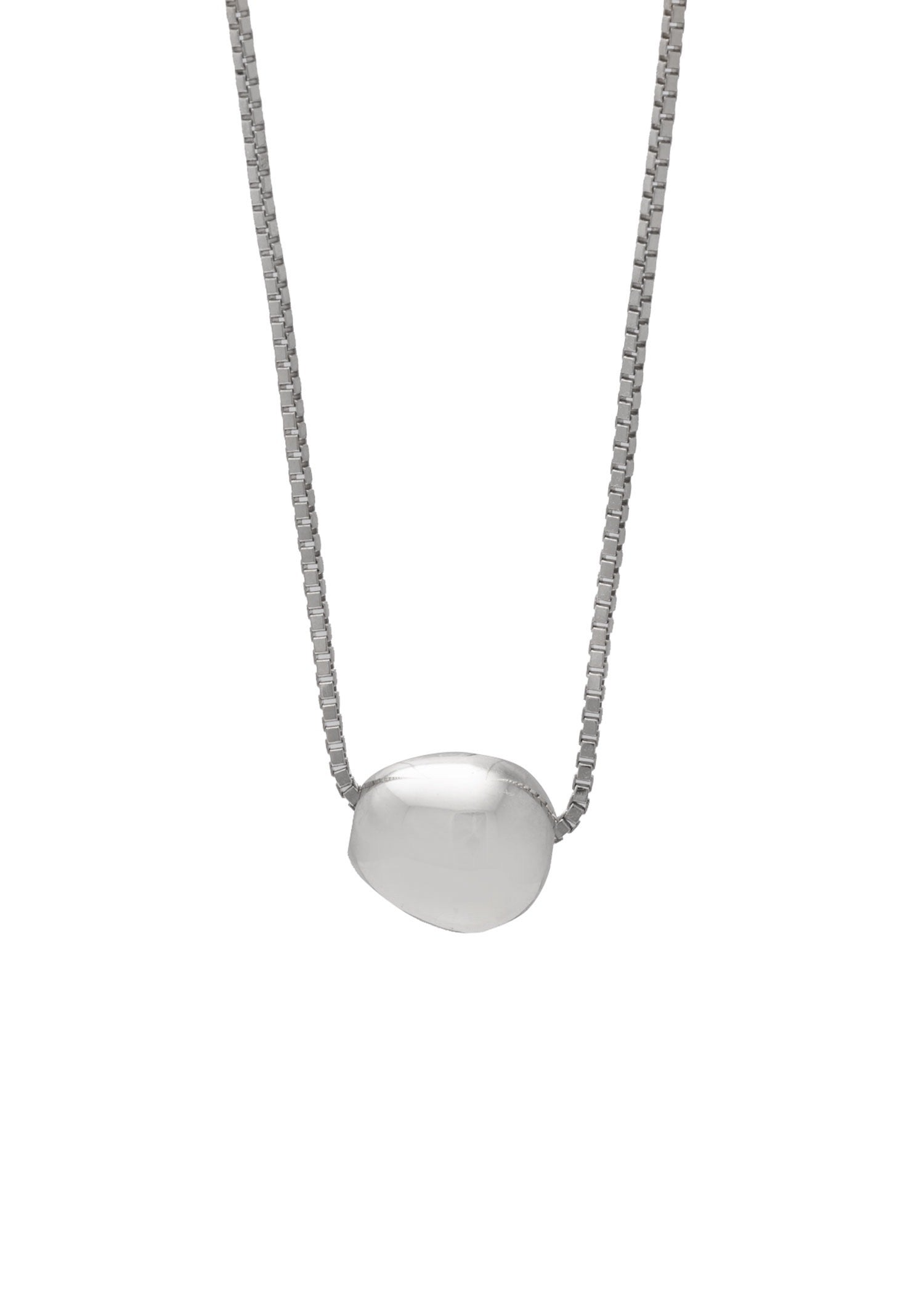 The gold plated pendant was hand carved from wax to mimic a natural fresh water pearl. The pendant slides over the box-chain for a sleek and sophisticated look. We think this piece is a must-have in your SMJ collection. We designed this piece to layer perfectly with the Heather Necklace, for a classic yet contemporary look.