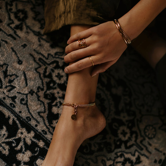 Add drama to your look with this edgy anklet.Adjustable length 9" - 9.75"