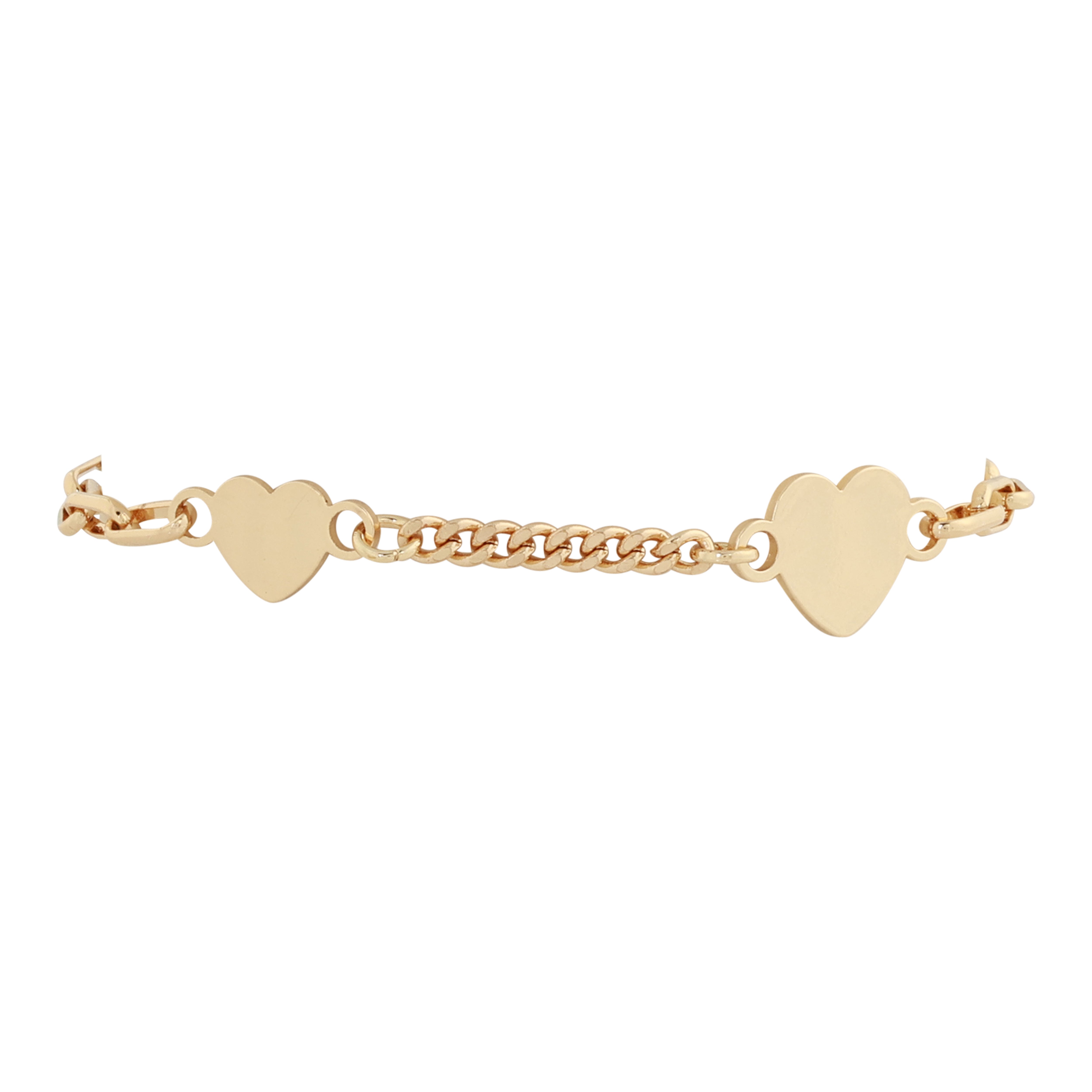 Dainty hearts steal the show on this charming bracelet, nestled perfectly between two classic chain styles for a look that's equal parts romantic and modern.