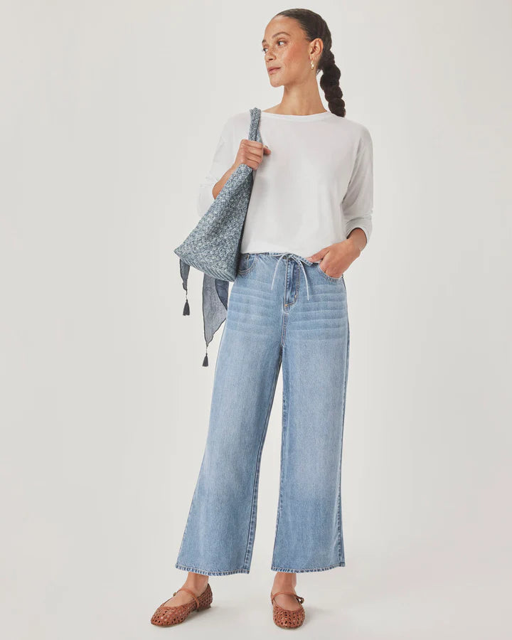 Denim never felt softer. Our Lounge Denim fabric feels like loungewear but looks like denim, designed for effortless everyday wear. These easy jeans have a dainty tie waist and cropped length in pastel shades we love.