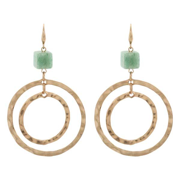 The hammered, polished loops provide a classic foundation, while the jade-inspired stone brings sophistication and versatility to any outfit. Perfect for everyday wear or special occasions, these earrings complement both casual and formal styles. The lightweight design ensures all-day comfort, making them an effortless addition to your jewelry collection.