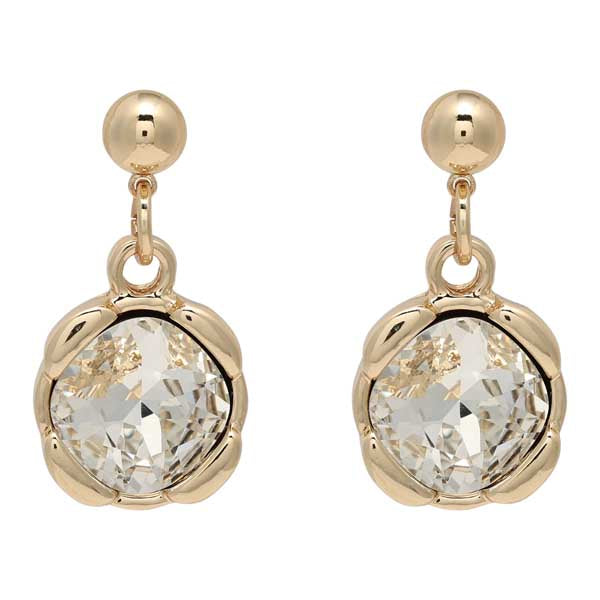 Elegant gold earrings featuring sparkling clear crystals that catch the light beautifully.