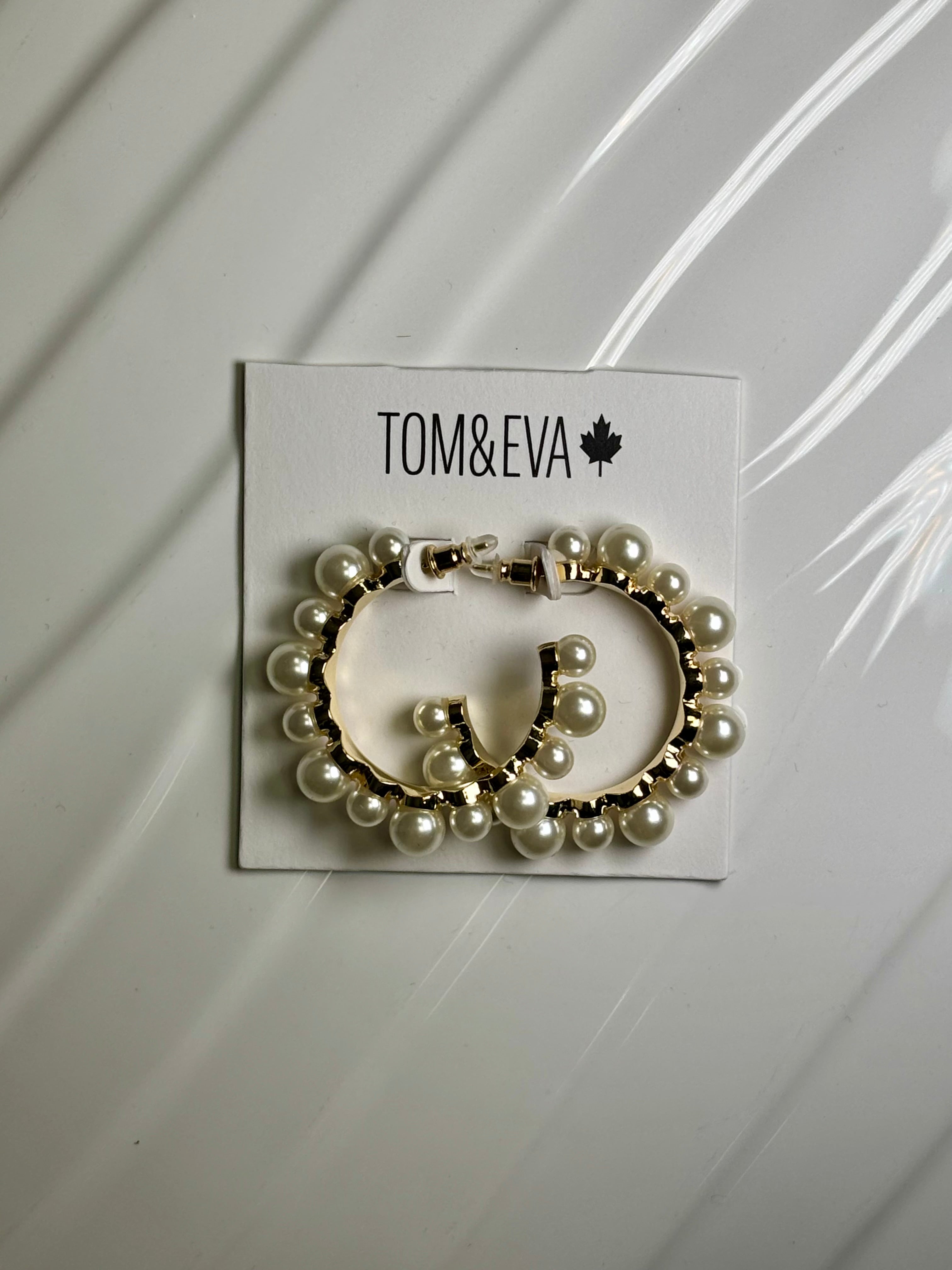 The Annabella Earrings feature elegant open hoops adorned with delicate pearl studs and secure stud backings. Their sophisticated design offers a timeless blend of classic beauty and modern maximalist energy, perfect for making a statement with any ensemble.