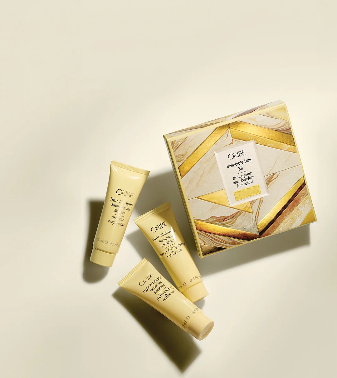 Receive a complimentary Invincible Hair Kit with the purchase of any two full-size Oribe products.