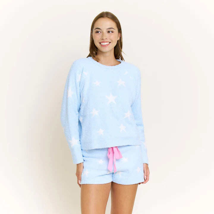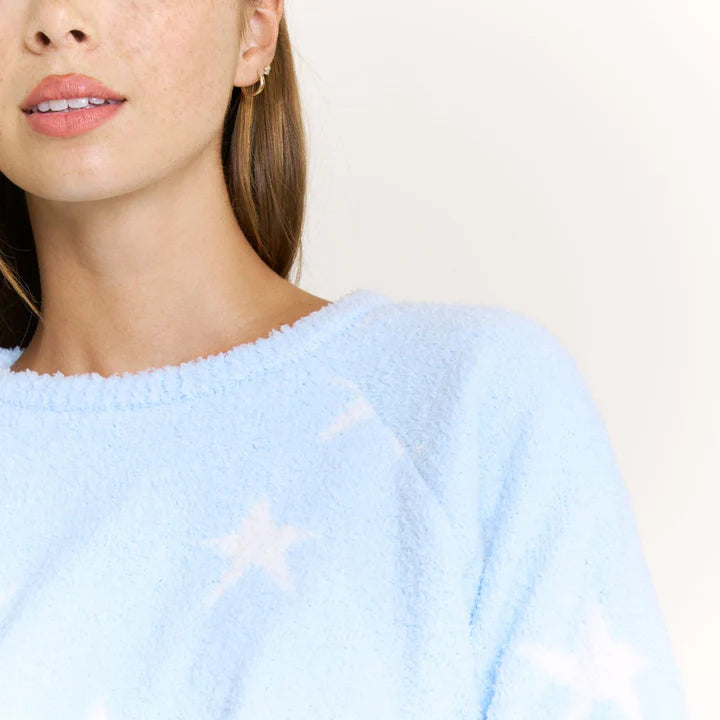 A long sleeve crewneck sweater in a super soft, fuzzy chenille. Pair it with the matching short!