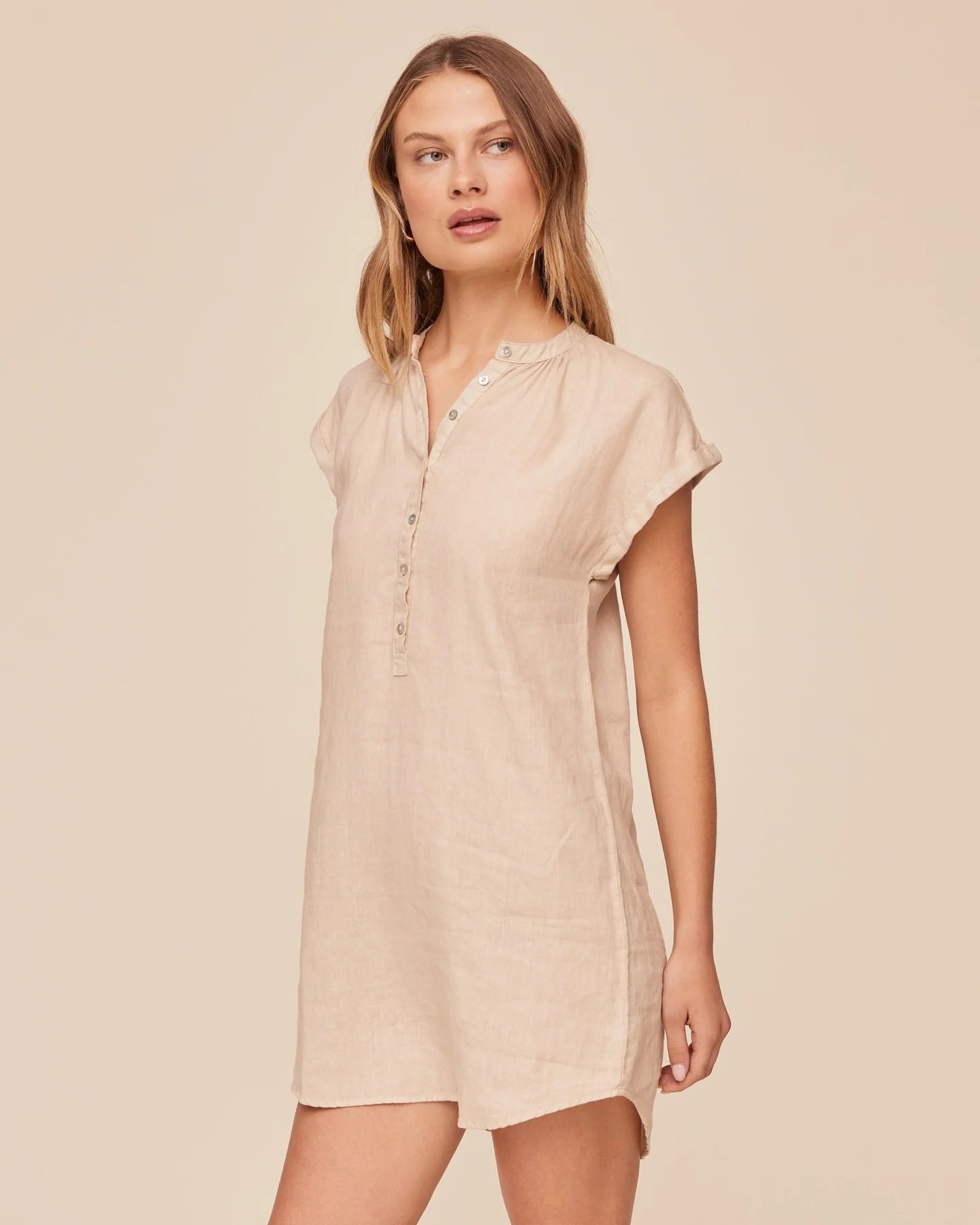 - Henley placket neckline – adds subtle structure and a touch of polish.