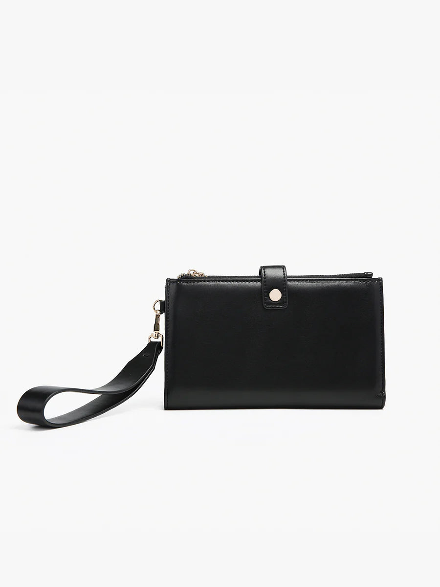 The Lark Zip-Top Wallet combines versatile organization with a sleek design. This multi-compartment bifold wallet features two zip pockets, three slip pockets, and a snap closure pocket, along with card slots and an ID window. The removable wristlet strap adds convenience, making it perfect for on-the-go use.