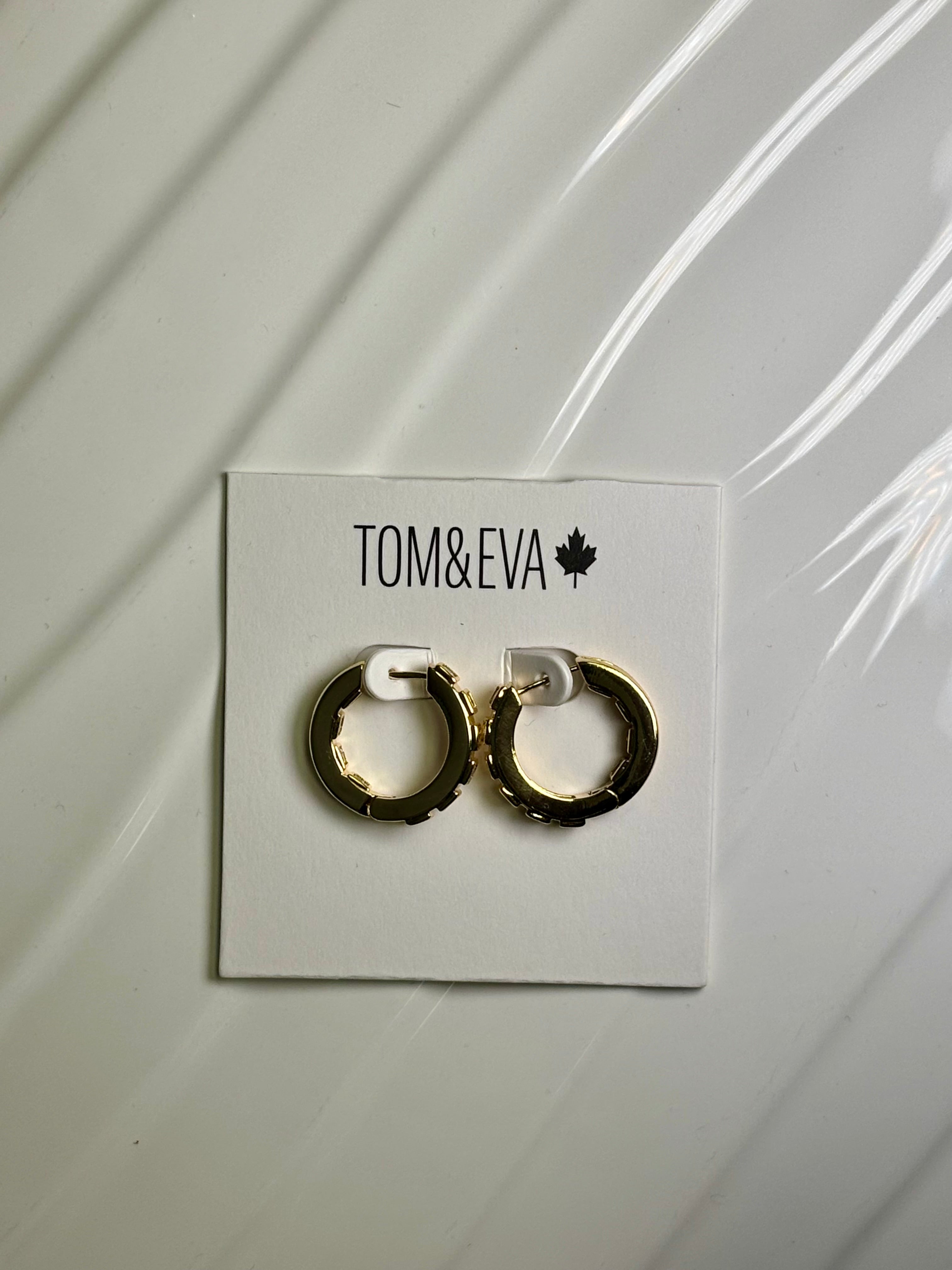 The Pansy Hoop Earrings feature a modern design accented with bezel-set stones both on the front and inside, ensuring you sparkle from every angle. This sophisticated pairing of sleek form and radiant detail creates an effortless shine that enhances any look with refined elegance.