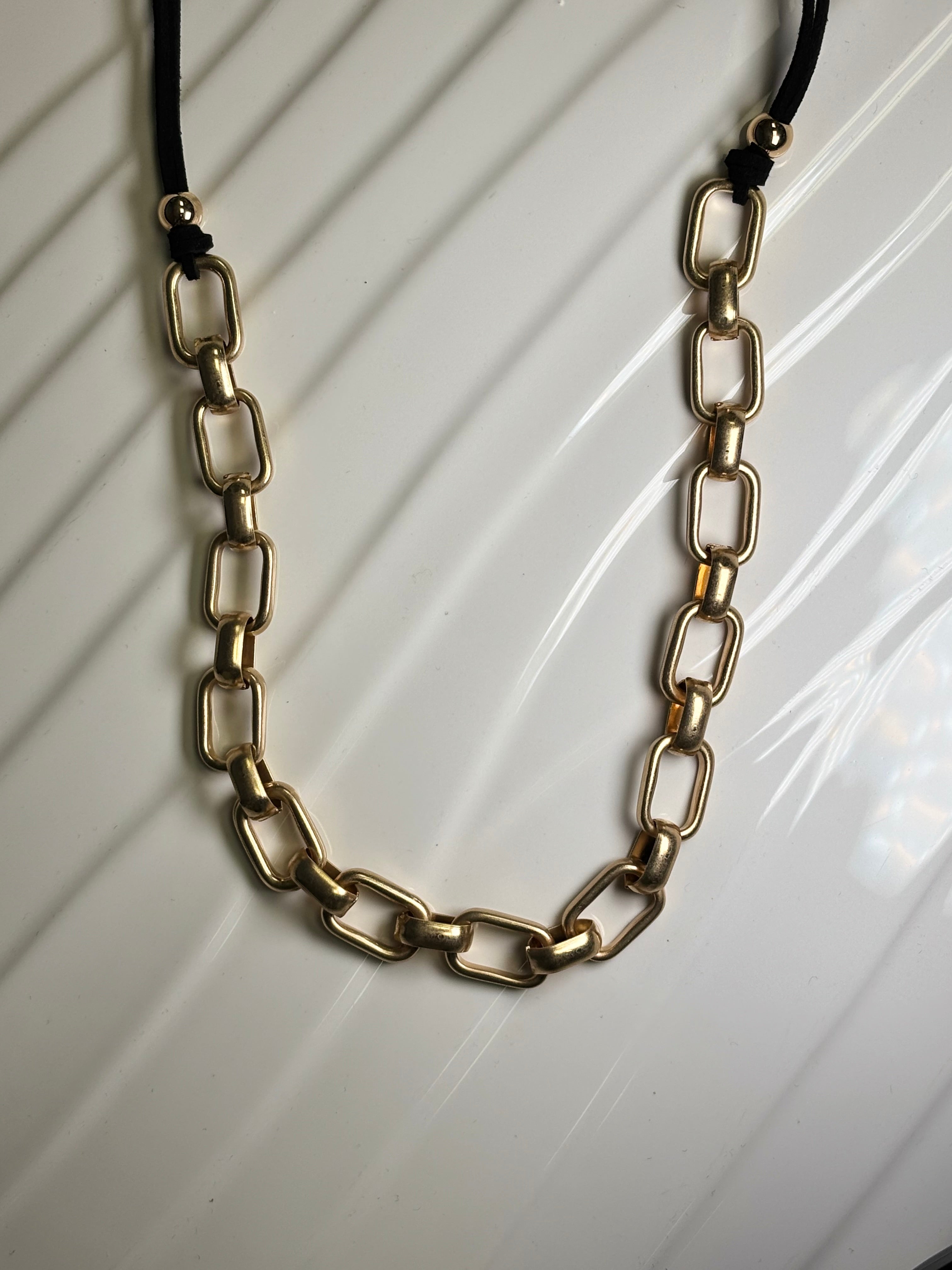 The Bailey Leather Necklace mixes rich leather with shiny gold links for a fun and bold look. Perfect for adding a playful edge to any outfit, this necklace brings together classic materials with a fresh twist to keep your style effortlessly cool and confident.