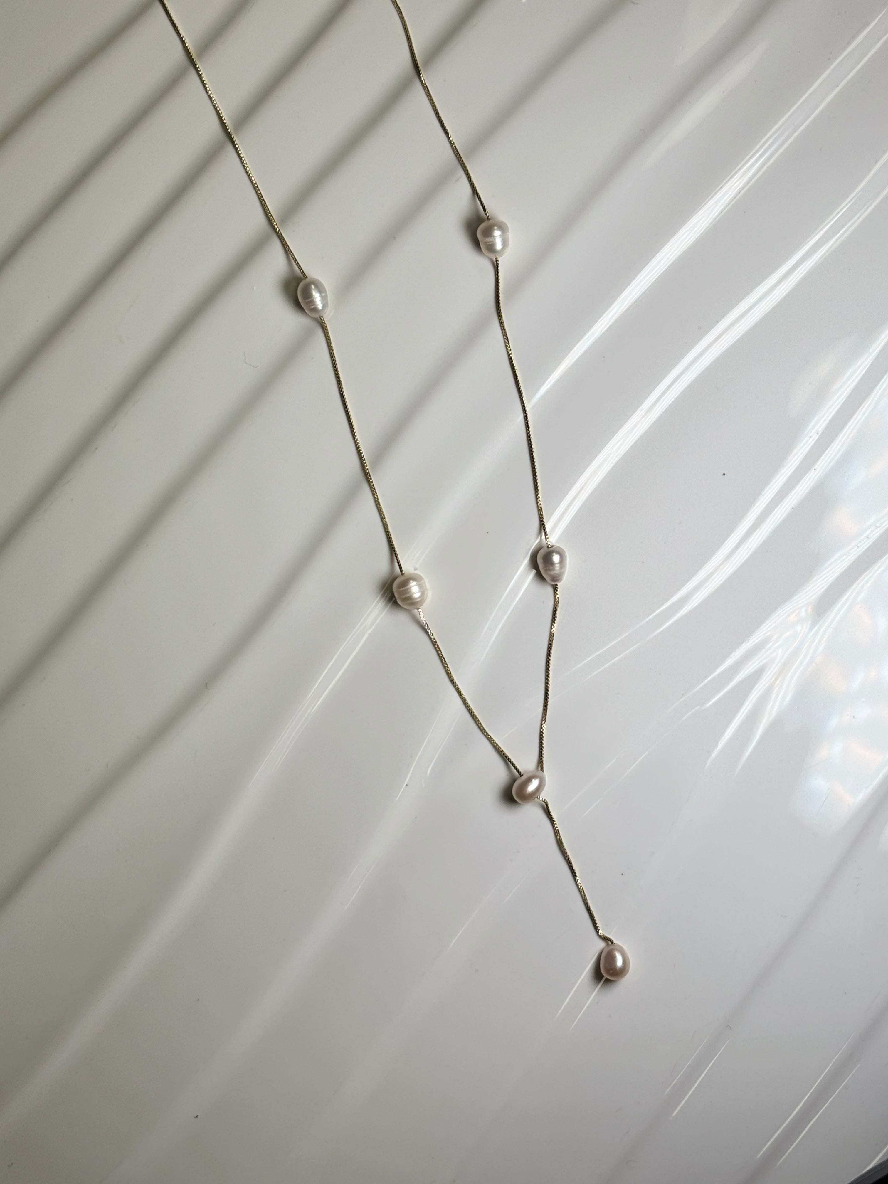 Elevate your elegance with the Brianna Necklace, featuring a delicately crafted gold Y-shaped design adorned with luminous pearl stones. This refined piece effortlessly enhances any outfit, adding a touch of timeless sophistication and grace. Perfect for both day and evening wear, it brings a subtle yet striking accent to your jewelry collection.