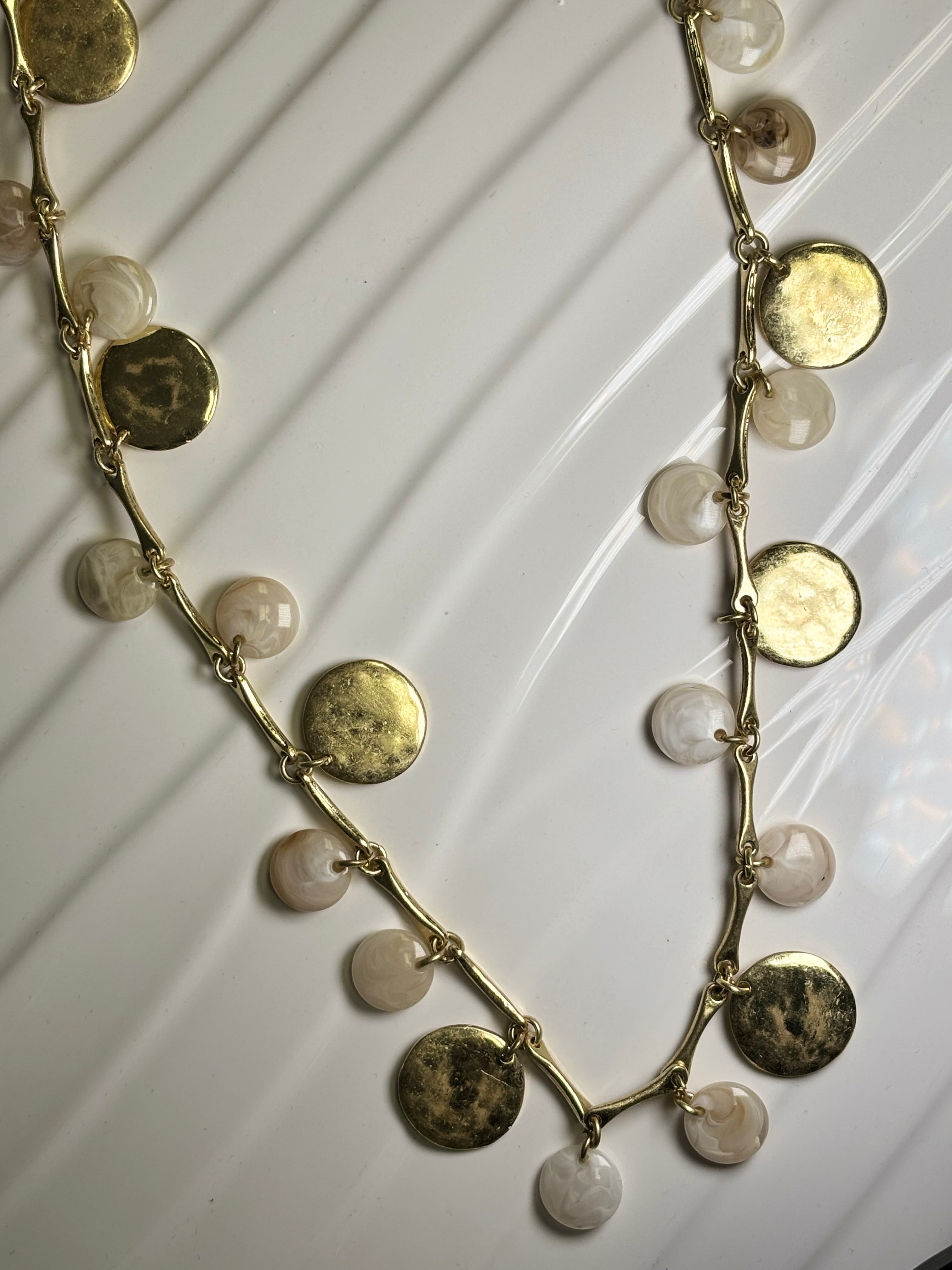 Brighten your look with the Dawn Necklace, where shimmering gold meets delicate stone accents. This playful piece adds a touch of sparkle and charm, perfect for lifting any outfit from simple to stunning. Embrace the glow and let your style shine all day long!