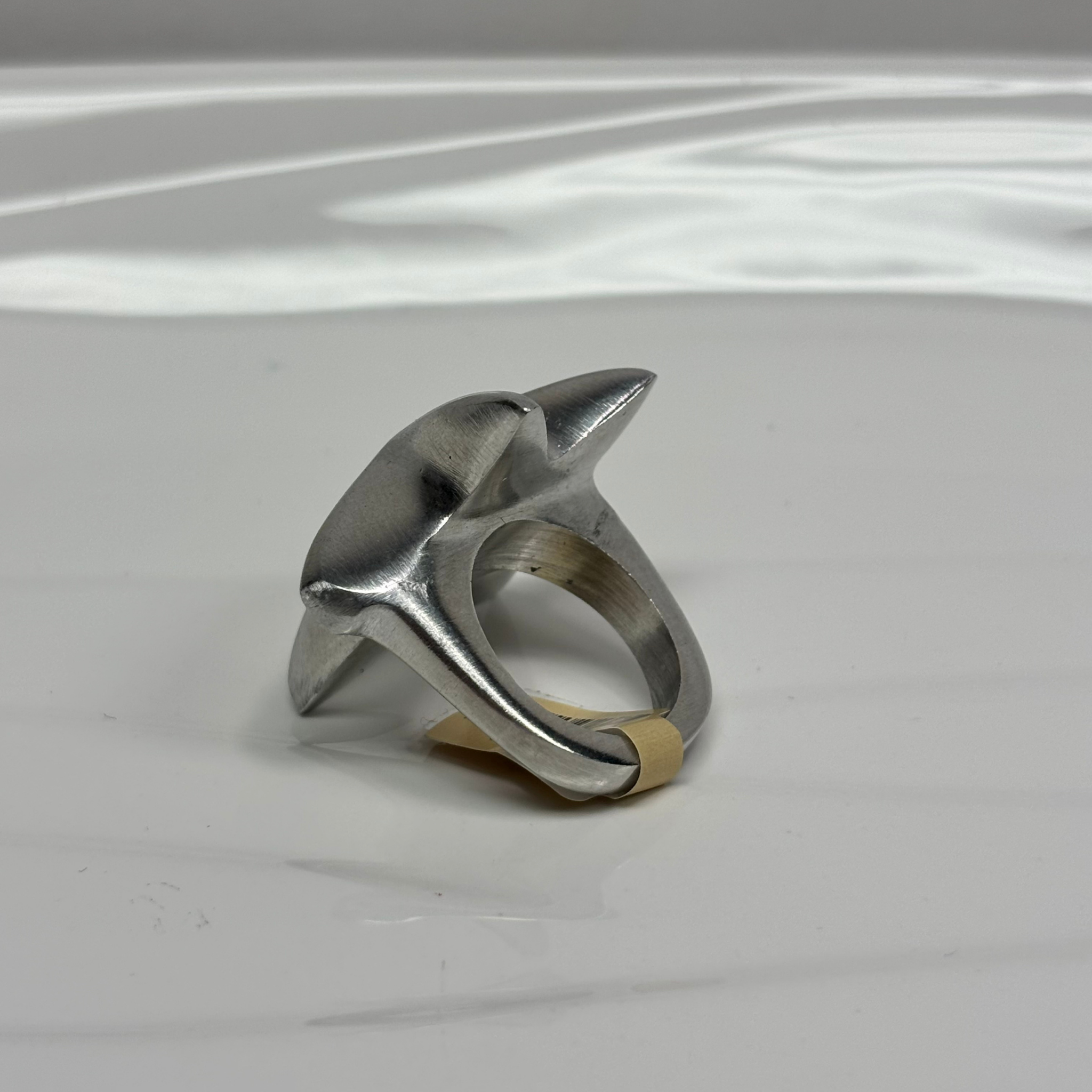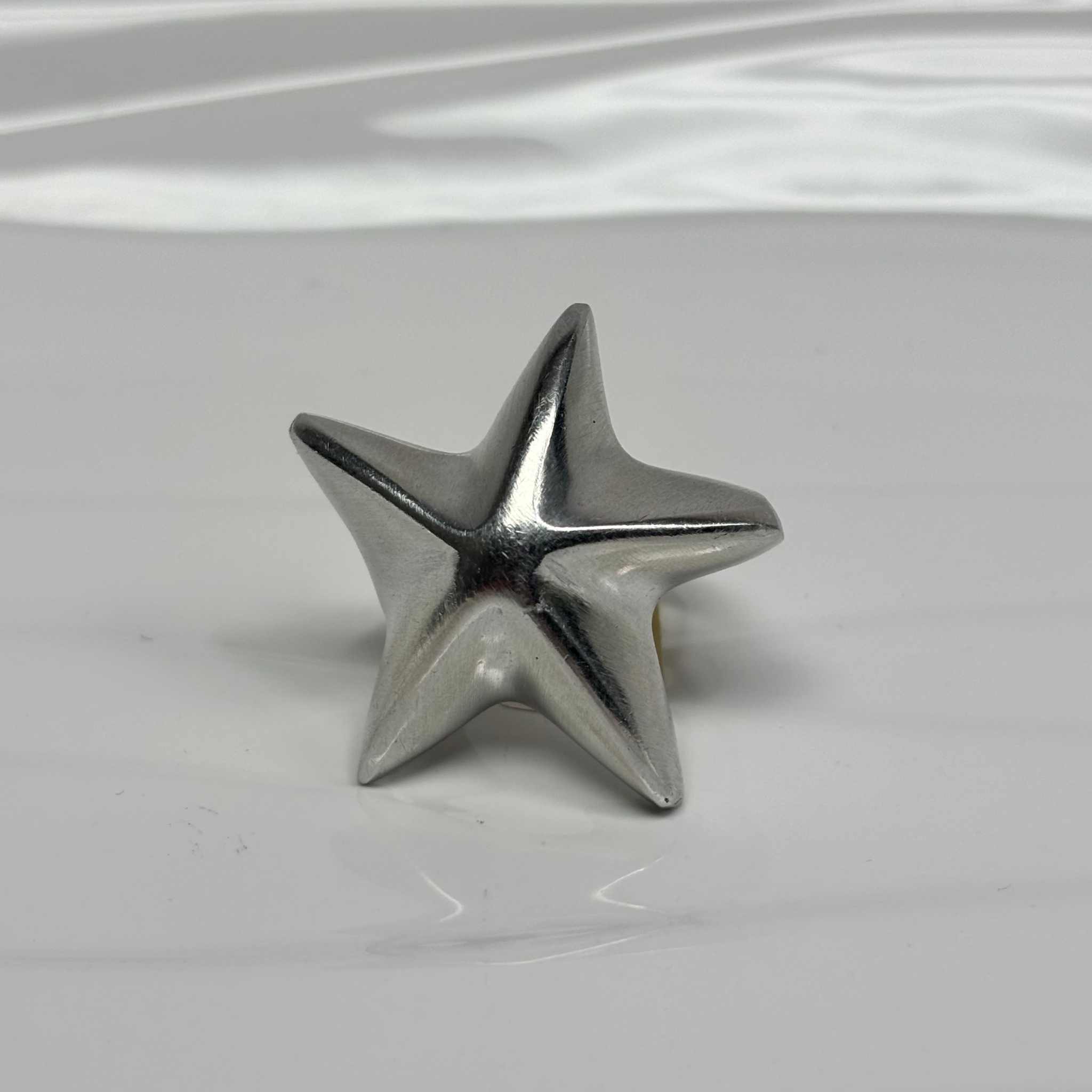 Make a bold statement with the Aurelia Star Ring, a striking cocktail piece crafted in brushed silver.