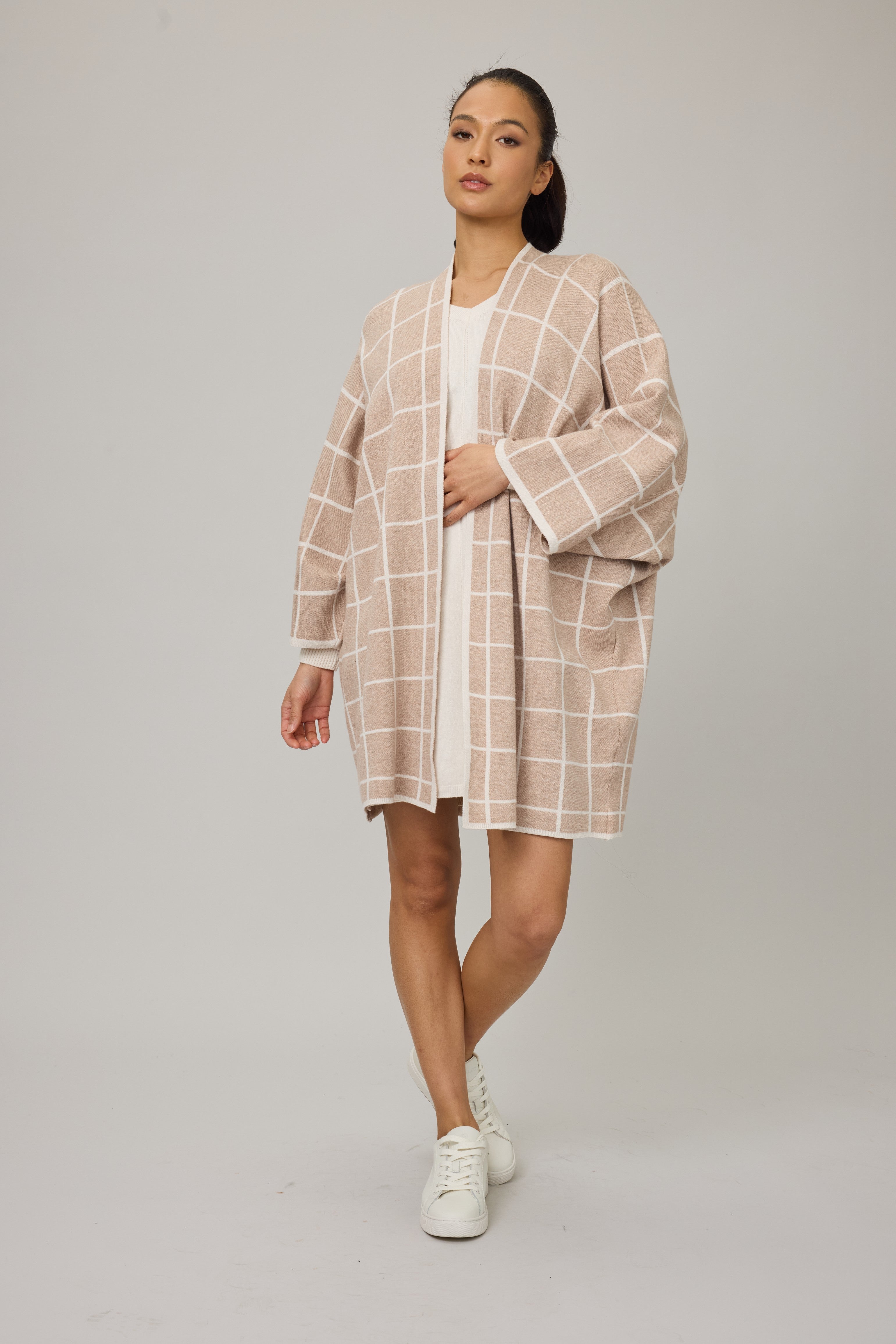 Cozy meets cool in this playful knit coat! With its boxy silhouette and wide sleeves, it offers a relaxed fit that's perfect for layering. The open front adds effortless style, while the just-above-the-knee length brings a touch of chic to your look. Ideal for those days when you want comfort without compromising on flair.