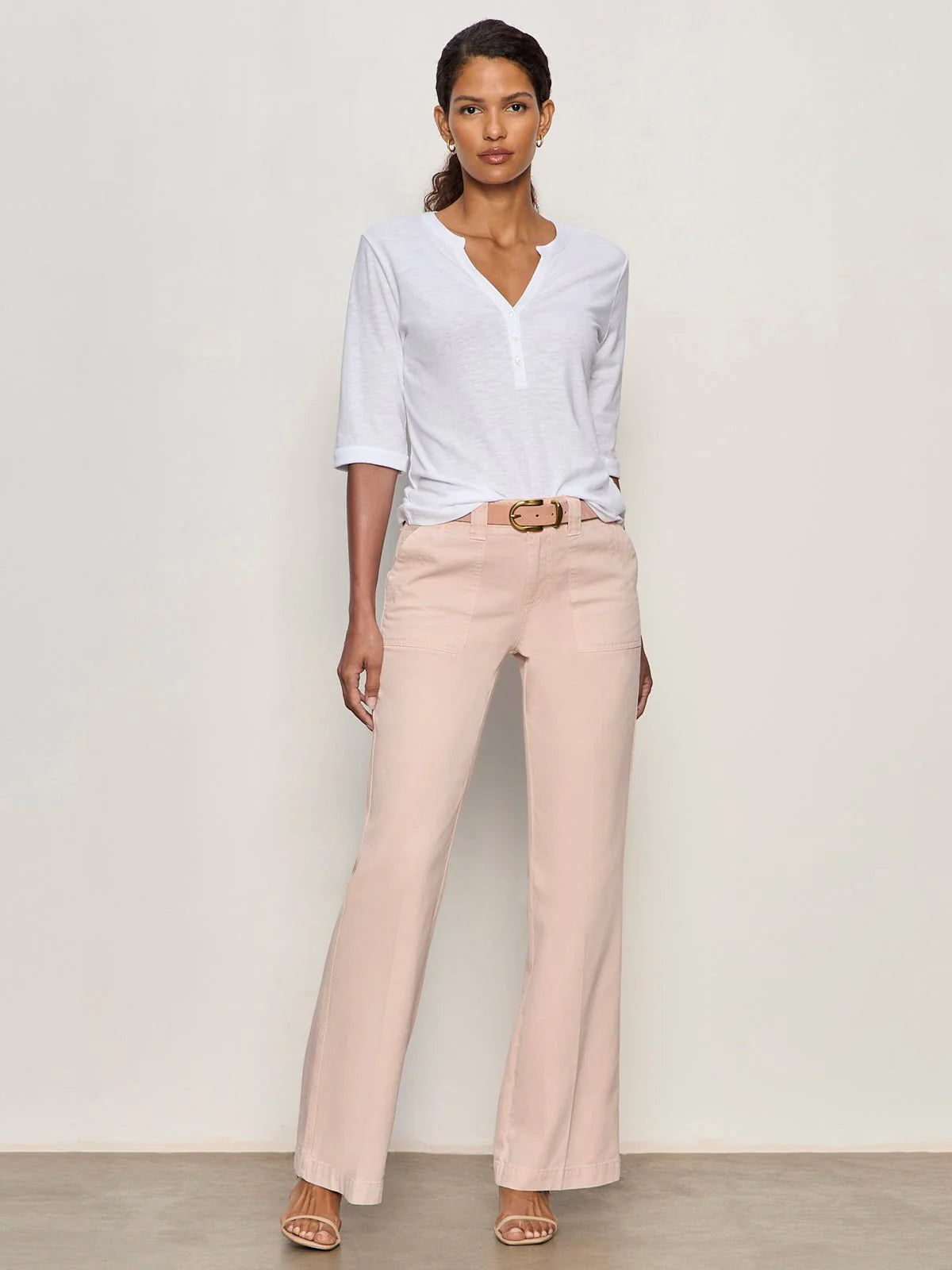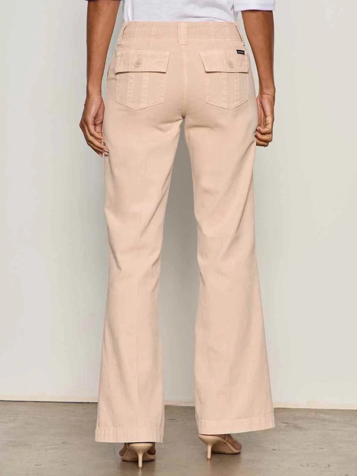 Cut in a relaxed bootcut with a crisp creased leg, these lightweight pants sit at a standard rise and feature a timeless zipper front. Four functional pockets keep your essentials close, while the non-stretch fabric holds its shape beautifully. Perfect for anyone craving that laid-back, vintage-inspired vibe without the fuss.
