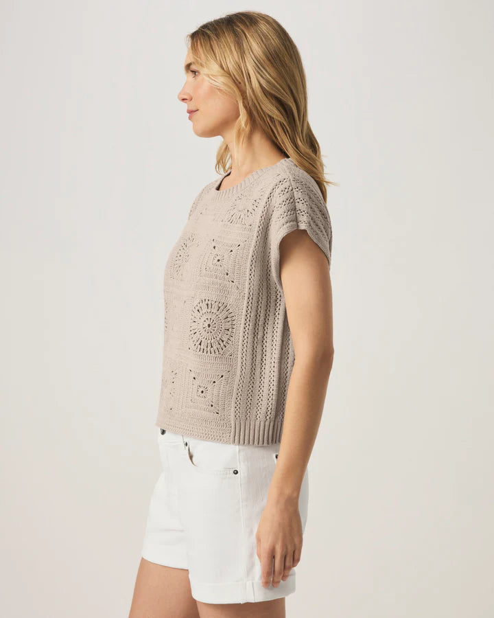 This pointelle sweater tank is on-point for warm summer days. It’s delightfully airy, thanks to an open-knit pointelle pattern of eye-catching squares in the front and pretty pointelle rib in the back. It’s roomy design only adds to its breathable appeal.
