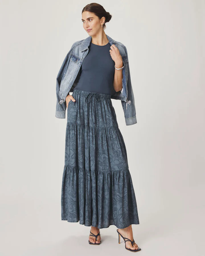 Effortless and made to pair with anything, this tiered paisley maxi skirt delivers just a hint of boho. Dress it up or pair it with our signature tees.