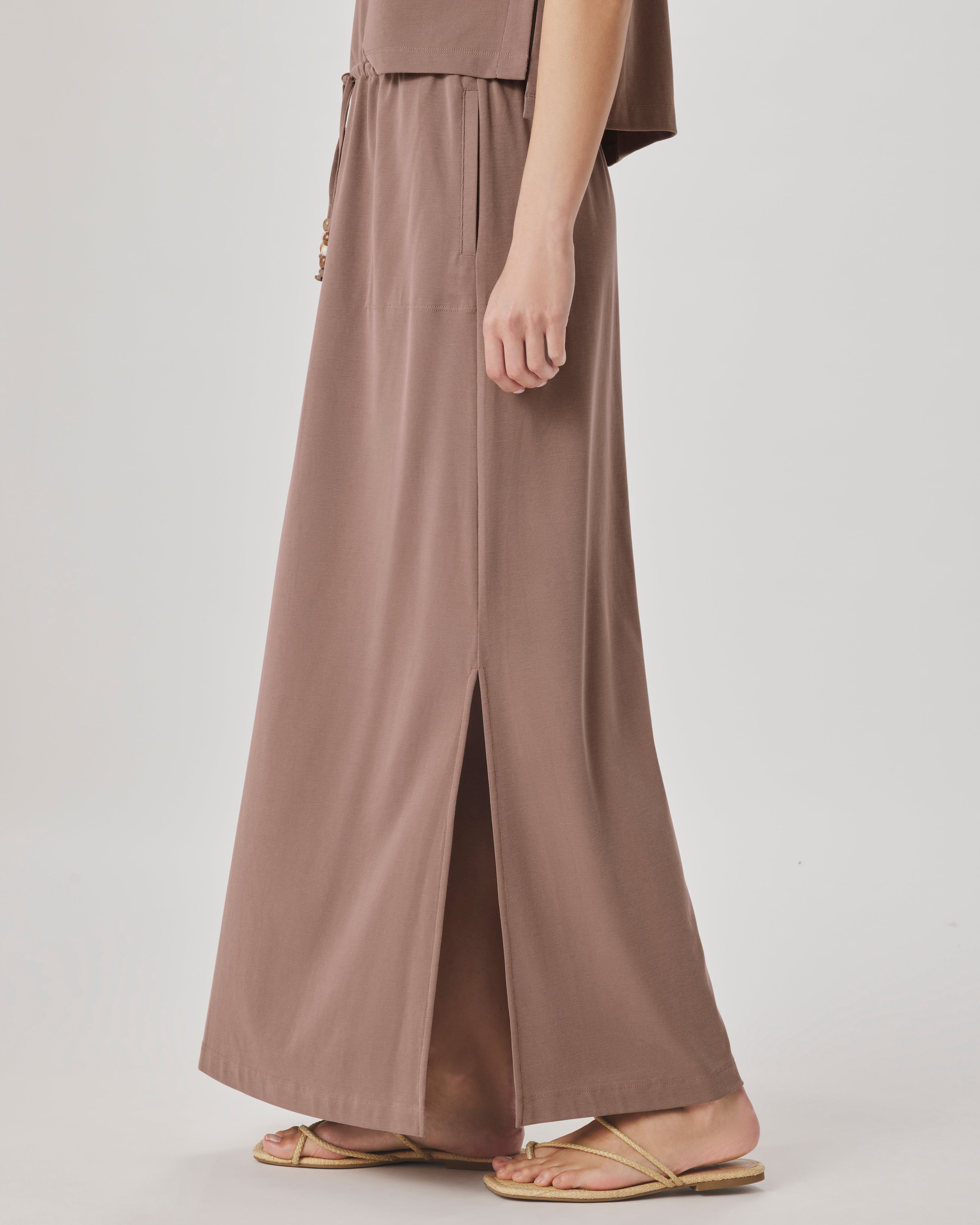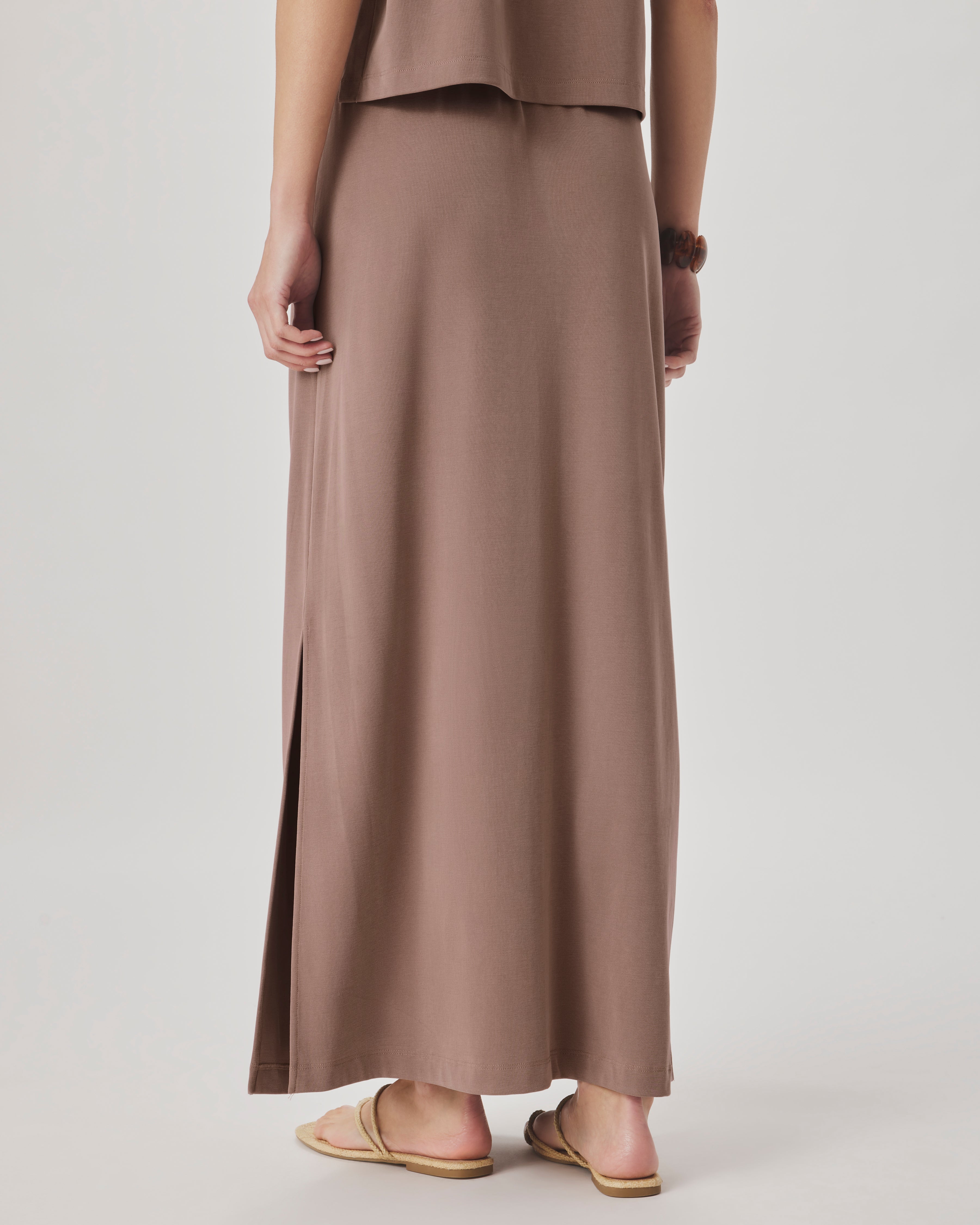 Effortless elegance meets everyday comfort in the Sasha Maxi Skirt. Crafted from a breathable blend of 71% polyester and 29% modal, this piece drapes beautifully while maintaining its shape.
