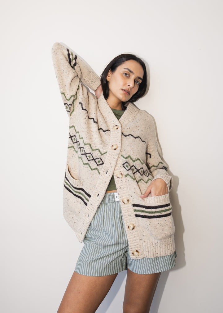 A twist on your vintage chalet cardigan. The Adrien Cardigan is made for chilly evenings and fireside lounging. Designed in a soft-touch wool blend with a full button front and generous collar, it wears just as well over loungewear as it does out and about. A cardigan you’ll reach for all holiday season.