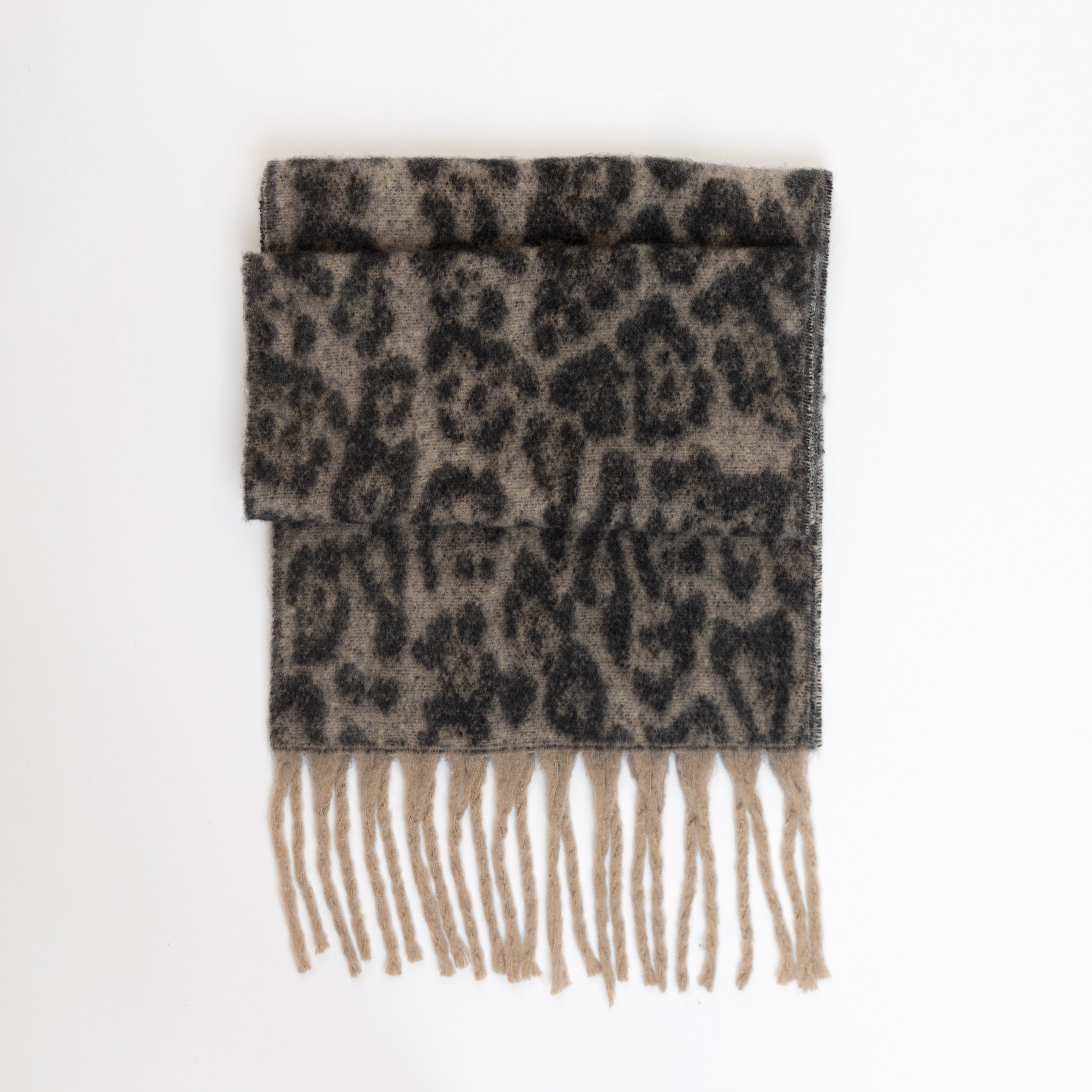 Wrap yourself in cozy charm with this oversized, fuzzy scarf featuring a playful leopard print in three subtle shades. Its soft texture and fun tassels add both warmth and whimsy to any outfit, perfect for those who love to make a stylish statement while staying snug.