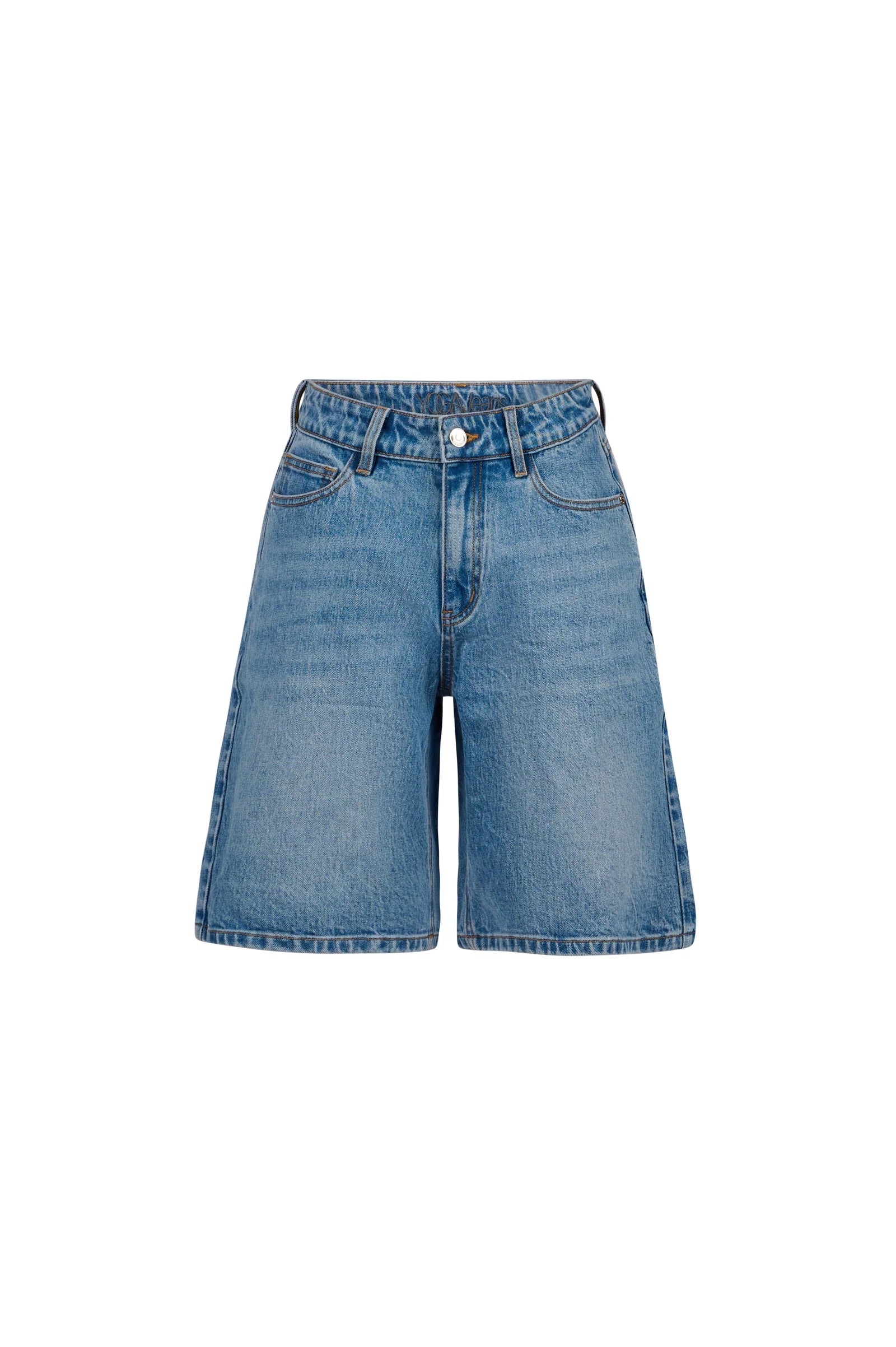 Stellar delivers effortless style with a high-rise fit and a 10 inch inseam. Crafted in a classic medium wash, this low-stretch short features a vintage-inspired look with a relaxed yet refined silhouette that holds its shape. Easy to style and endlessly versatile, Stellar is a go-to piece for timeless, warm-weather dressing.