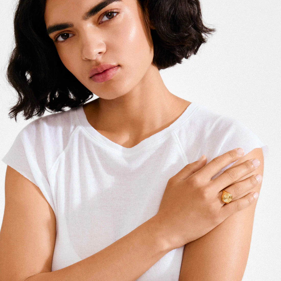 Elevate your everyday with the AIR signet ring from Pilgrim — a gold-plated or silver-plated stunner with serious handcrafted vibes. The spiral detail draws from ancient Nordic design, now with a bold, urban edge. Wear it on your index finger as a modern statement and style it with loose layers for that effortless energy. It’s adjustable for a perfect fit, waterproof and made from 99% recycled materials — because we’re all about planet-friendly style.